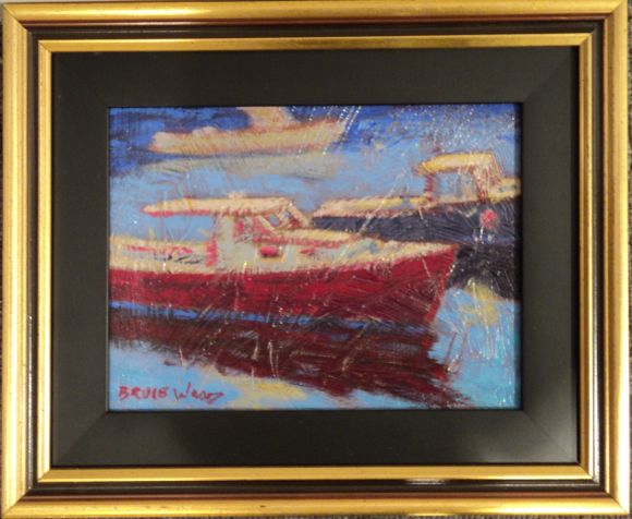 Cape Ann Gloucester Lobster Boat Painting, framed